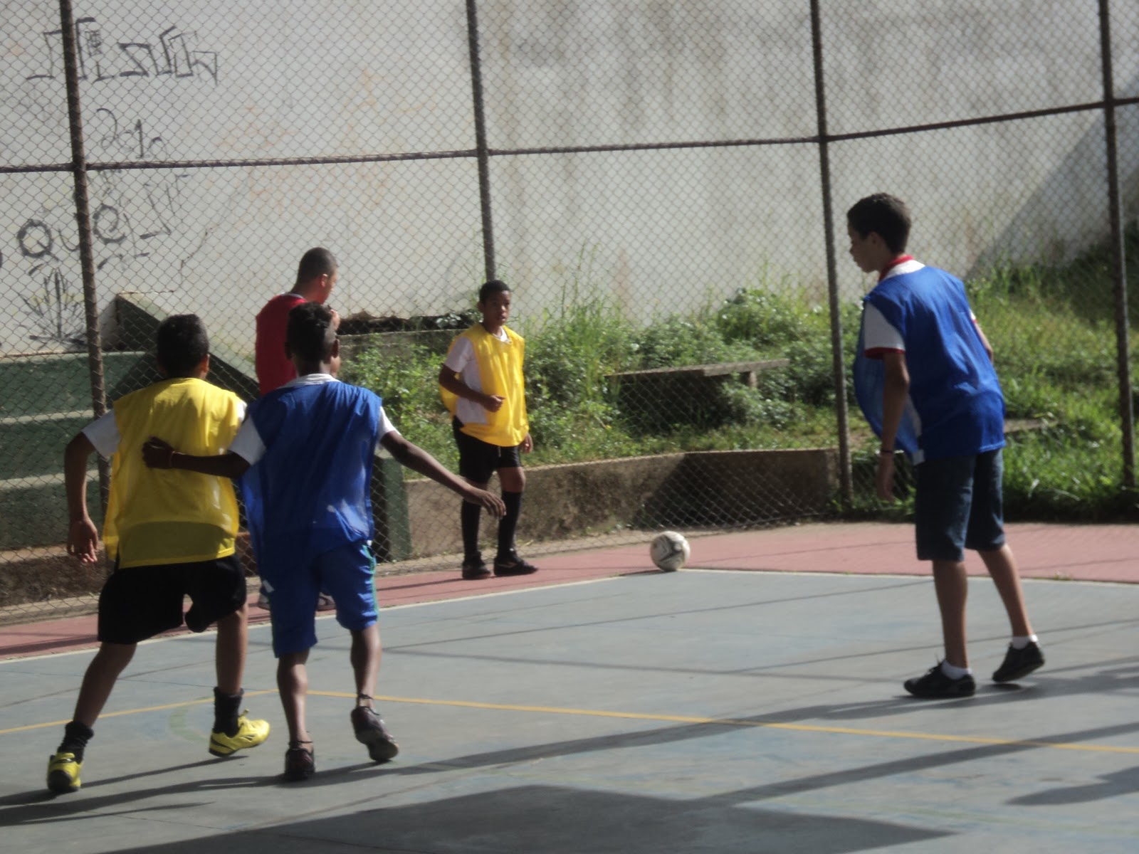 Juiz "Kinho" do 8º Ano, organiza o início do jogo: 6°A x 6°C